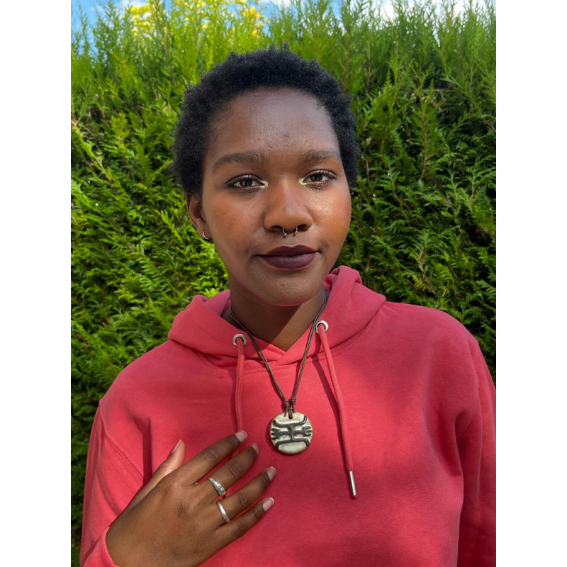 Médaillon en terre cuite Fait main avec cordon en cuir