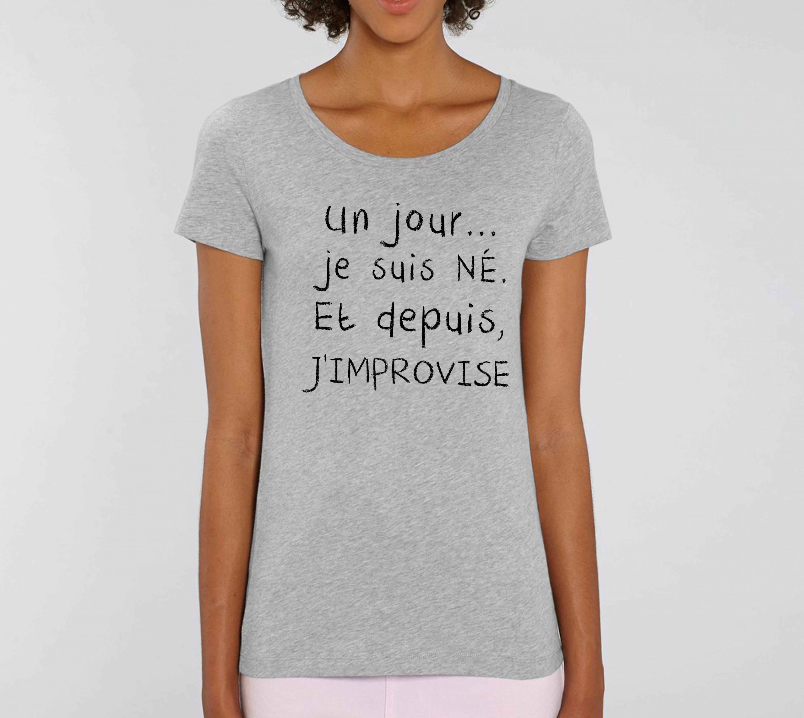 T-shirt Femme-Un jour je suis née et depuis, j’improvise